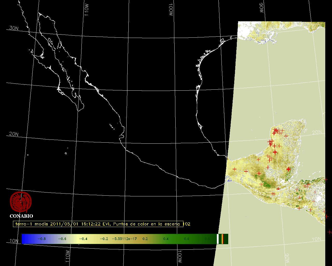 Se considera como punto de calor al elemento espacial mínimo de la imagen (pixel) que reporta una temperatura elevada. Para las imágenes diurnas la temperatura mínima considera es de 42 C y para las imágenes nocturnas es de 25 C. |