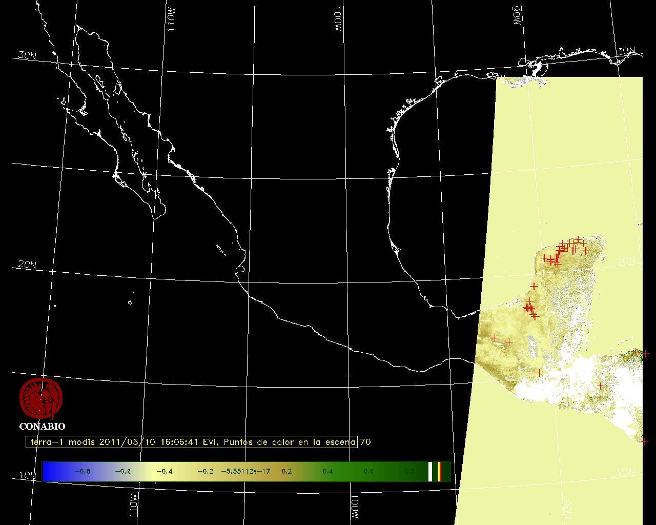 Se considera como punto de calor al elemento espacial mínimo de la imagen (pixel) que reporta una temperatura elevada. Para las imágenes diurnas la temperatura mínima considera es de 42 C y para las imágenes nocturnas es de 25 C. |