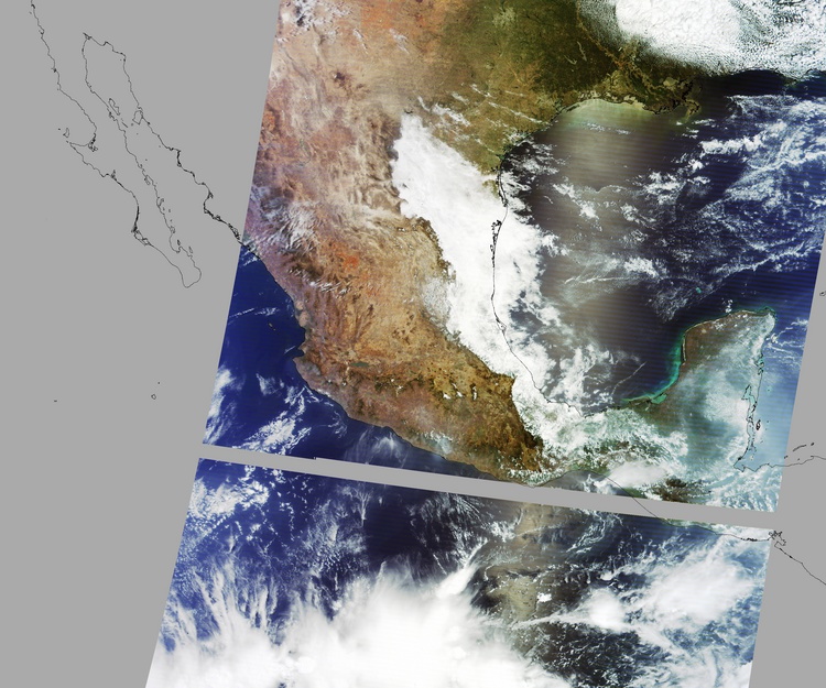 Nubosidad en el terreno:18% Nubosidad sobre México:17% Datos nulos en la escena:29% Datos nulos sobre México:22% |