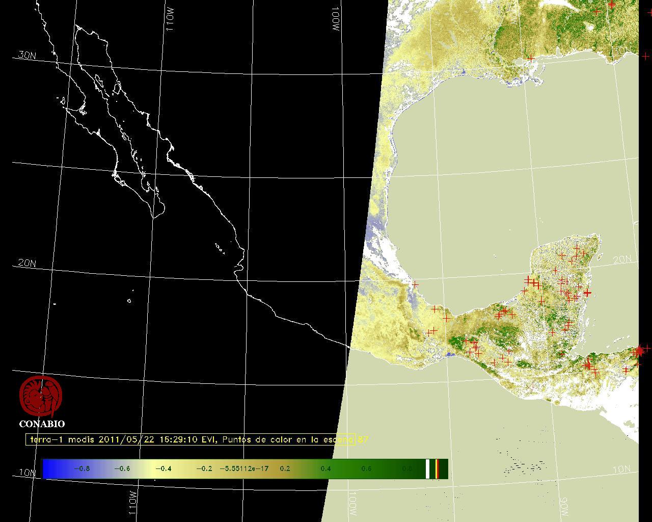 Se considera como punto de calor al elemento espacial mínimo de la imagen (pixel) que reporta una temperatura elevada. Para las imágenes diurnas la temperatura mínima considera es de 42 C y para las imágenes nocturnas es de 25 C. |