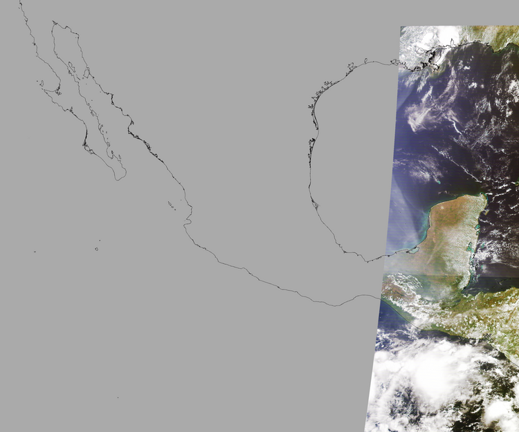 Nubosidad en el terreno:18% Nubosidad sobre México:4% Datos nulos en la escena:75% Datos nulos sobre México:88% |