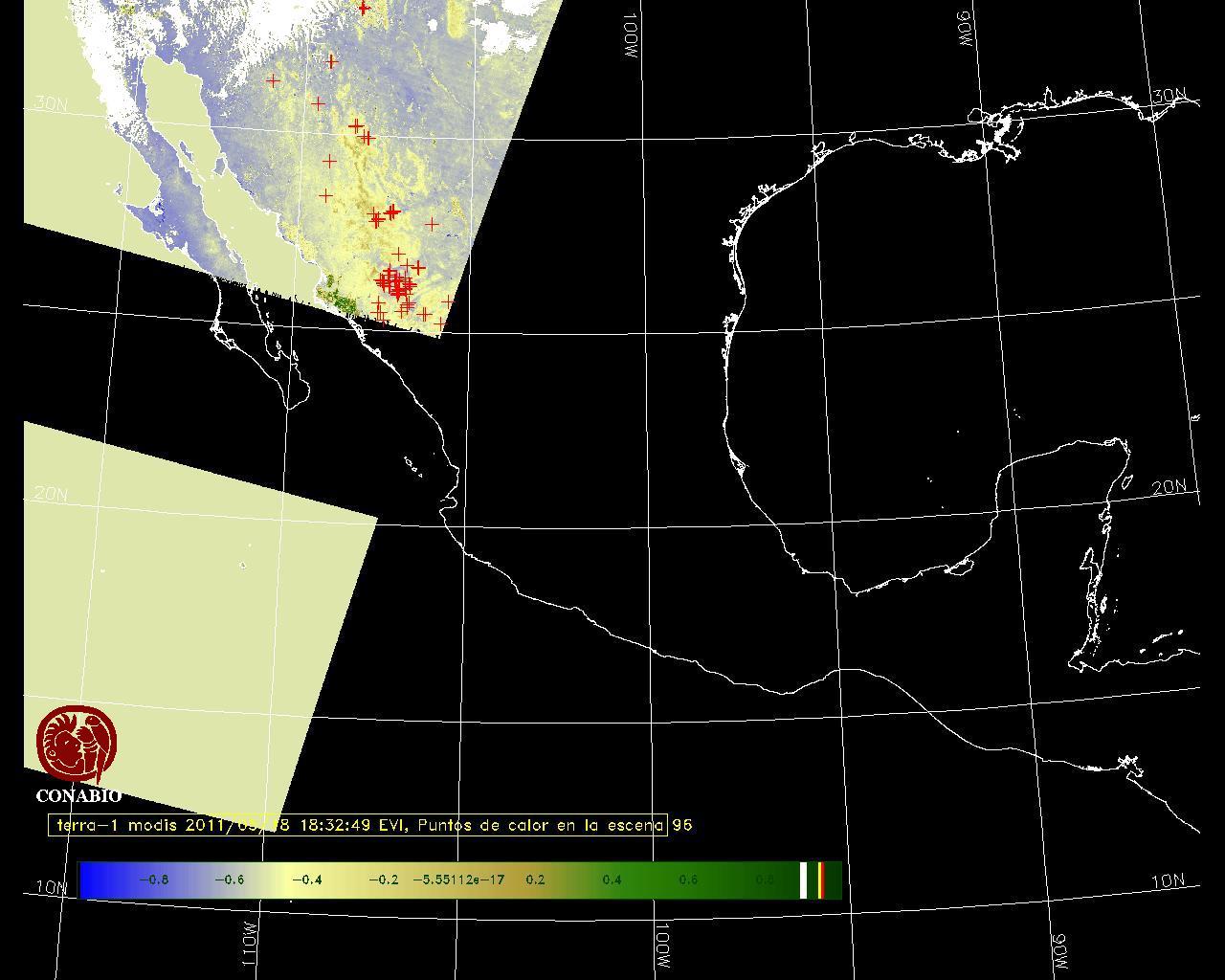 Se considera como punto de calor al elemento espacial mínimo de la imagen (pixel) que reporta una temperatura elevada. Para las imágenes diurnas la temperatura mínima considera es de 42 C y para las imágenes nocturnas es de 25 C. |