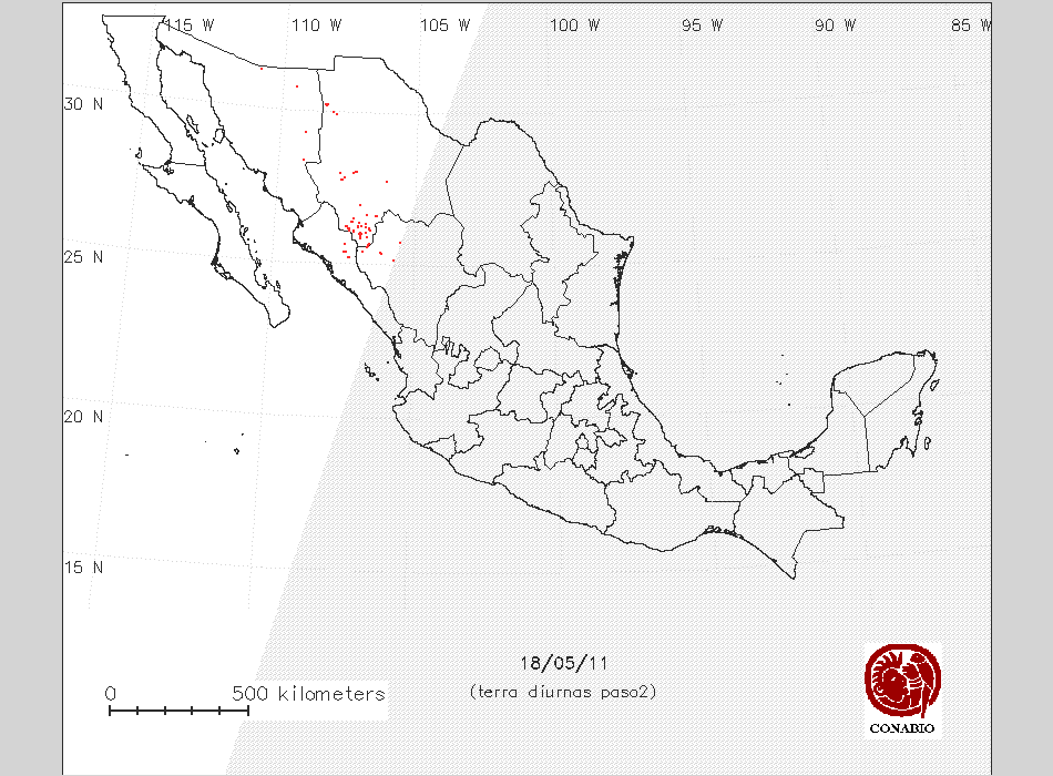 | X | 31 | 1 | -107 7 10 | 26 16 59 | Bosque de pino | Guadalupe y Calvo,Chihuahua | NO AFECTA | 10 ° | Bajo |