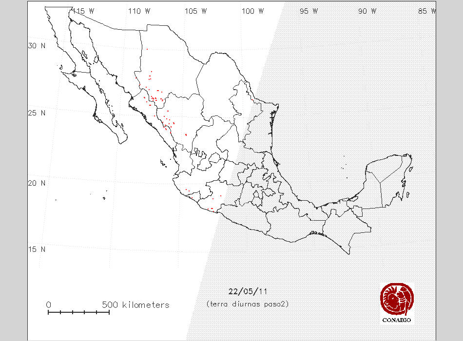 | X | 38 | 1 | -105 55 59 | 24 19 12 | Bosque de pino | San Dimas,Durango | NO AFECTA | 27 ° | Bajo |