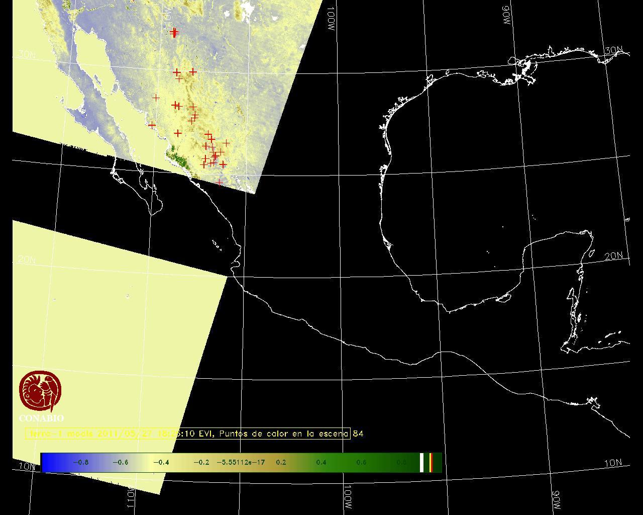 Se considera como punto de calor al elemento espacial mínimo de la imagen (pixel) que reporta una temperatura elevada. Para las imágenes diurnas la temperatura mínima considera es de 42 C y para las imágenes nocturnas es de 25 C. |