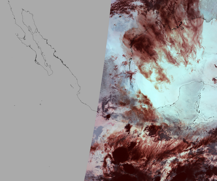 Nubosidad en el terreno:20% Nubosidad sobre México:8% Datos nulos en la escena:45% Datos nulos sobre México:54% |