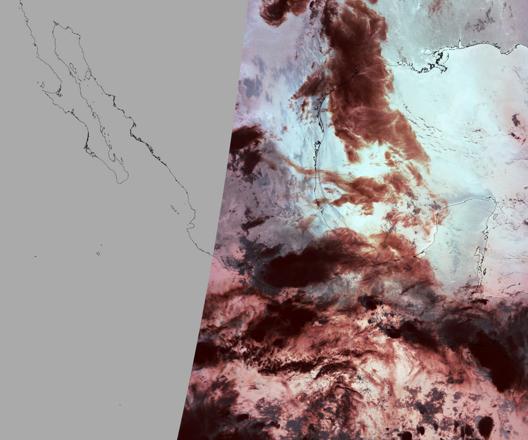 Nubosidad en el terreno:26% Nubosidad sobre México:24% Datos nulos en la escena:41% Datos nulos sobre México:44% |