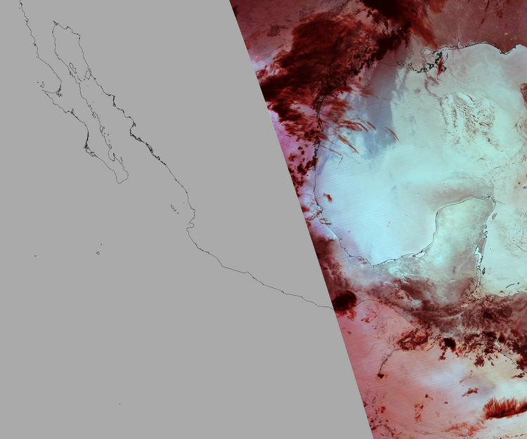 Nubosidad en el terreno:16% Nubosidad sobre México:7% Datos nulos en la escena:57% Datos nulos sobre México:73% |