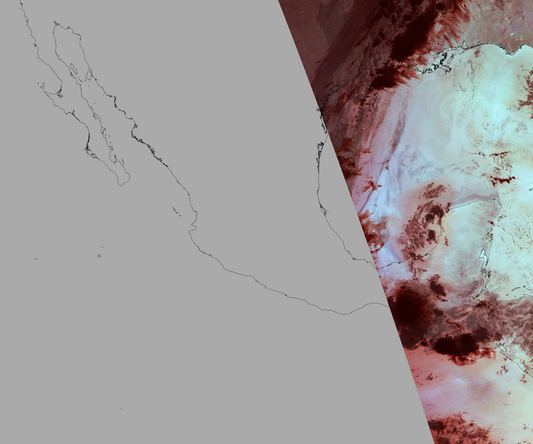 Nubosidad en el terreno:13% Nubosidad sobre México:13% Datos nulos en la escena:67% Datos nulos sobre México:87% |