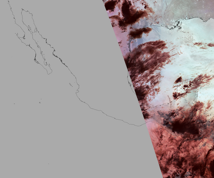 Nubosidad en el terreno:23% Nubosidad sobre México:12% Datos nulos en la escena:62% Datos nulos sobre México:84% |