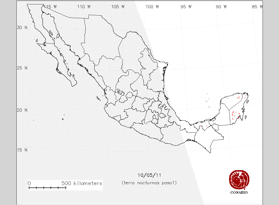 | 13 | -89 6 2 | 19 1 34 | Pastizal cultivado | Othón P. Blanco,Quintana Roo | NO AFECTA | 0 ° | ND | ||