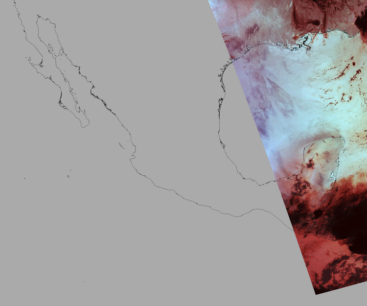 Nubosidad en el terreno:21% Nubosidad sobre México:5% Datos nulos en la escena:73% Datos nulos sobre México:90% |