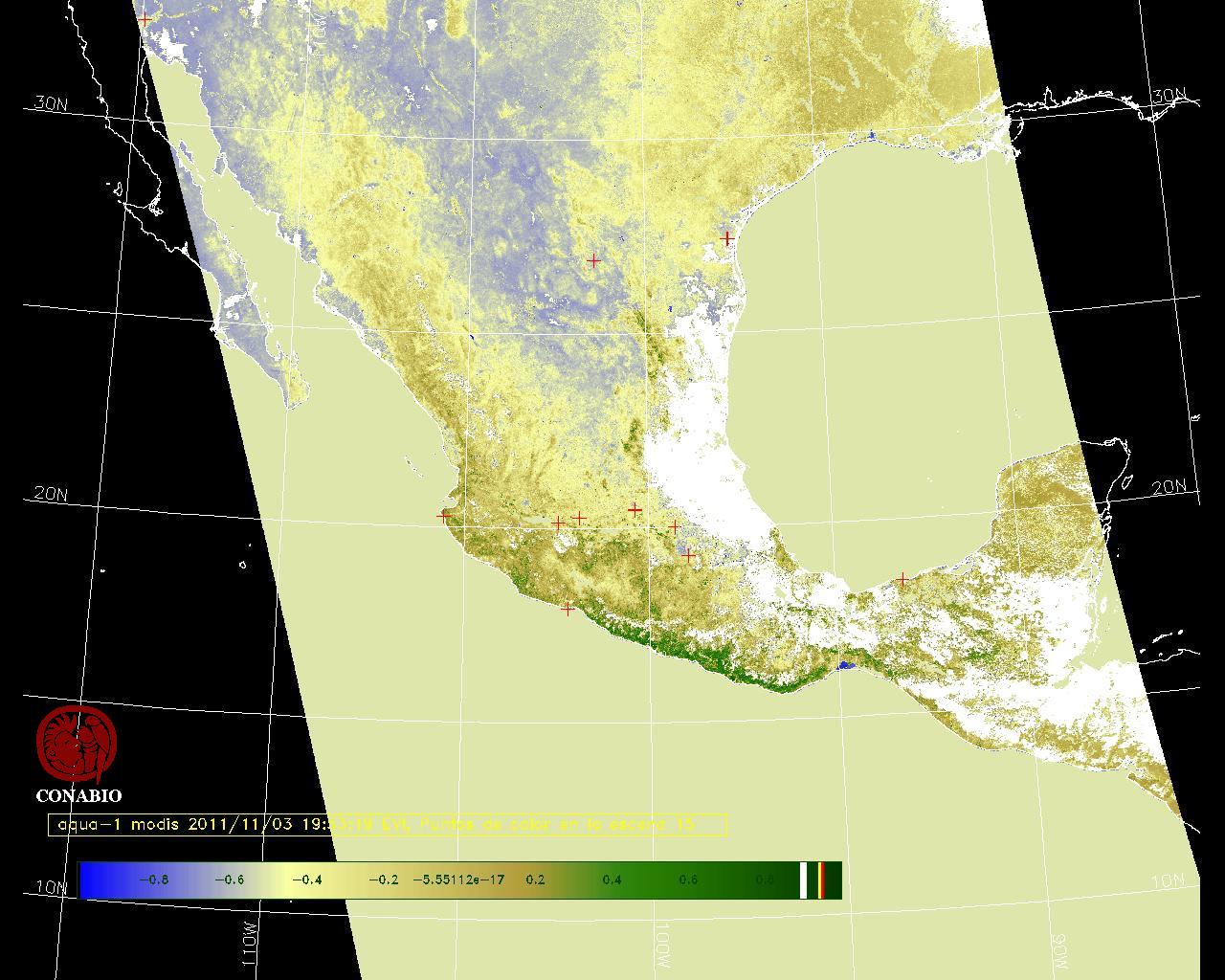 Los valores del índice van de -1 a 1, entre más cercano al valor 1 la vegetación presenta mayor vigor. Los índices de vegetación son utilizados para conocer el comportamiento de la vegetación tanto espacial como temporal. |