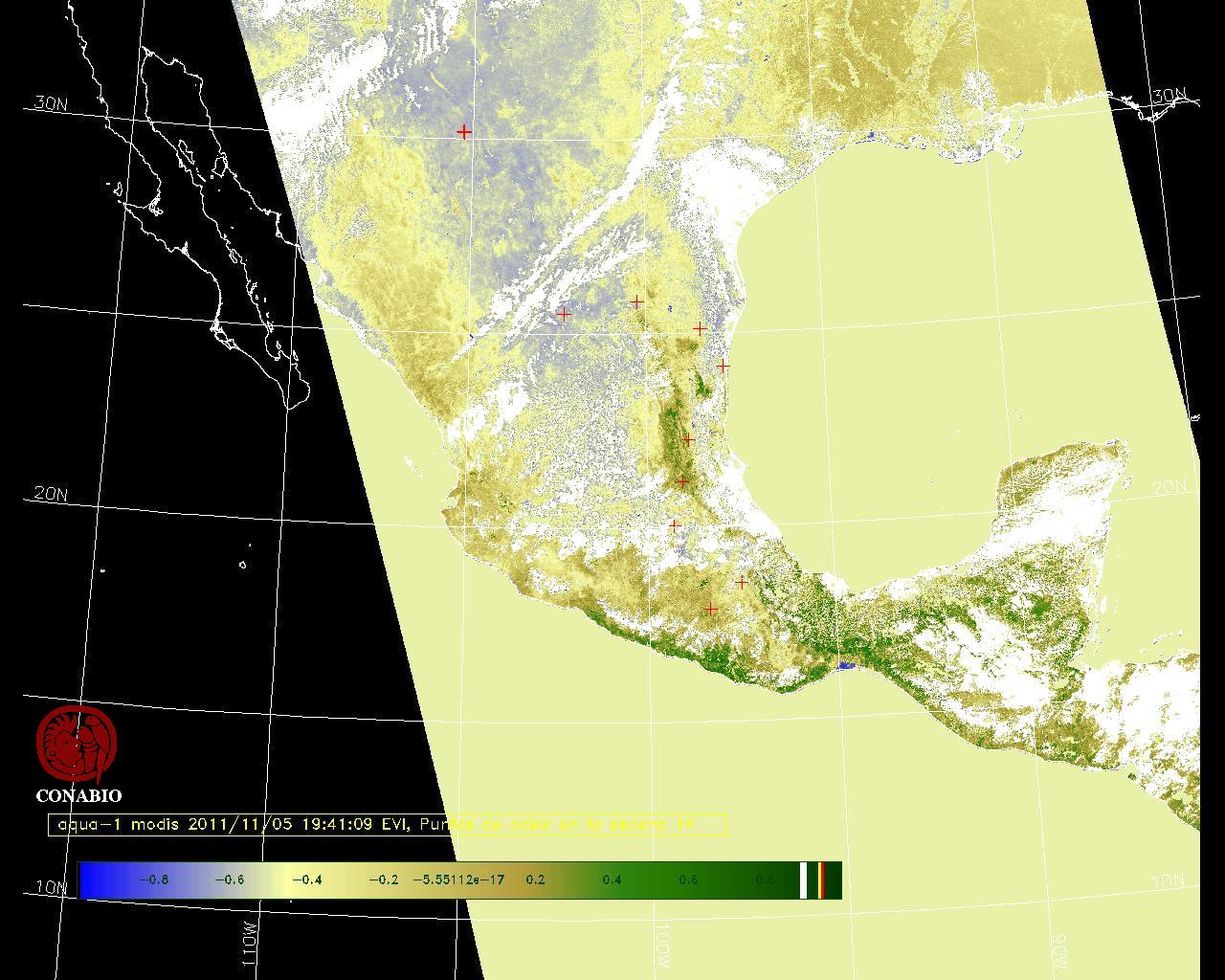 Nubosidad en el terreno:22% Nubosidad sobre México:22% Datos nulos en la escena:31% Datos nulos sobre México:11% |