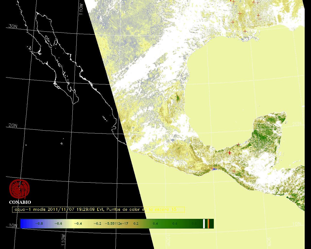 Se considera como punto de calor al elemento espacial mínimo de la imagen (pixel) que reporta una temperatura elevada. Para las imágenes diurnas la temperatura mínima considera es de 42 C y para las imágenes nocturnas es de 25 C. |