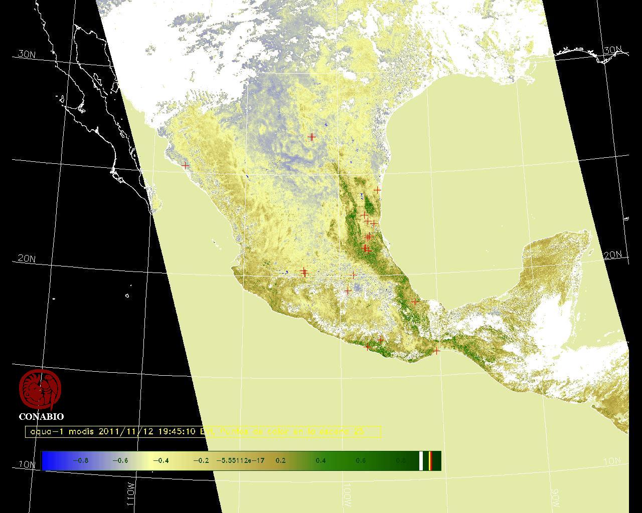 Los valores del índice van de -1 a 1, entre más cercano al valor 1 la vegetación presenta mayor vigor. Los índices de vegetación son utilizados para conocer el comportamiento de la vegetación tanto espacial como temporal. |