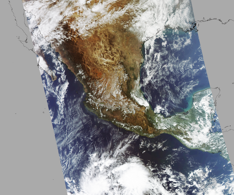 Nubosidad en el terreno:33% Nubosidad sobre México:20% Datos nulos en la escena:28% Datos nulos sobre México:5% |