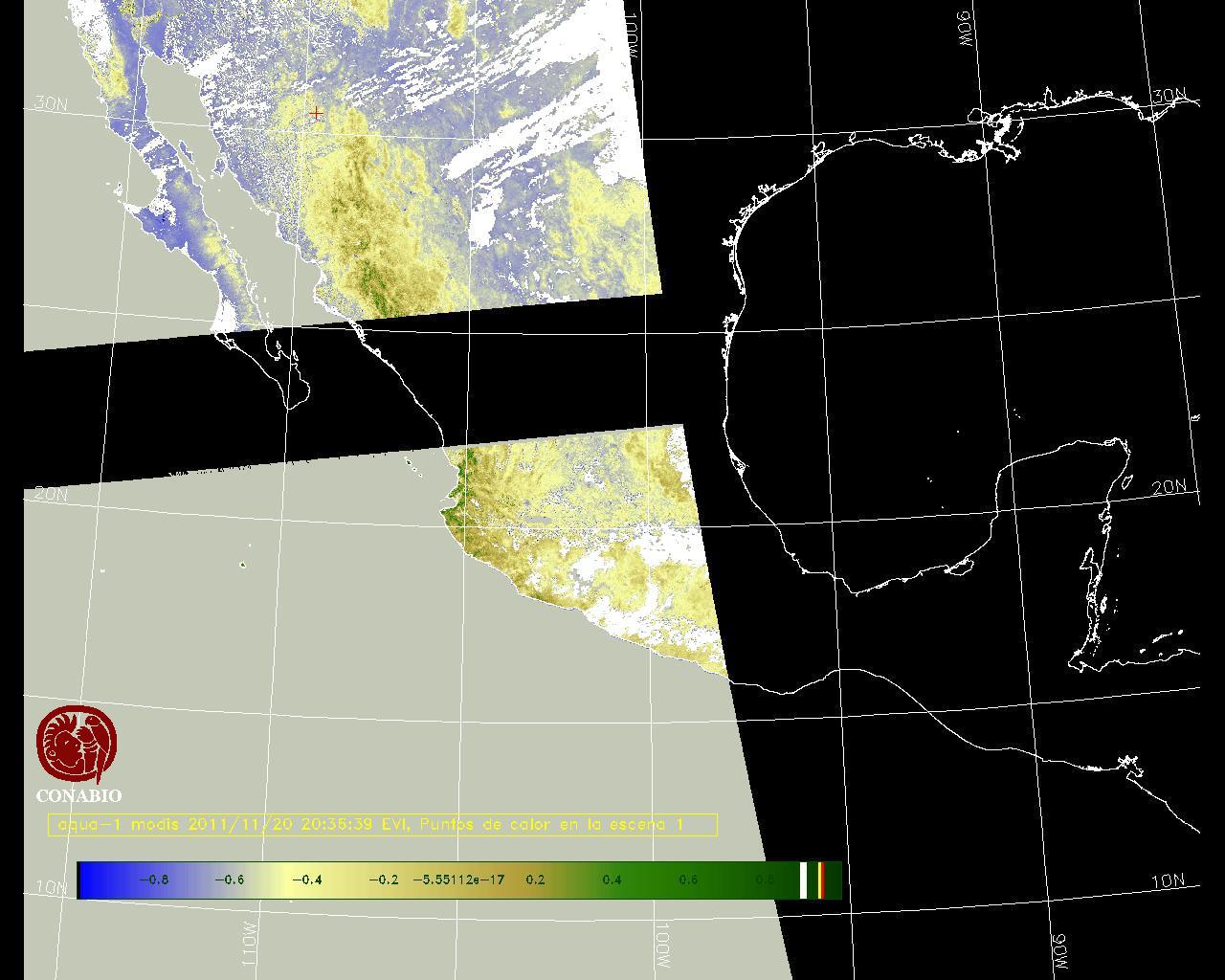 Nubosidad en el terreno:17% Nubosidad sobre México:11% Datos nulos en la escena:42% Datos nulos sobre México:26% |