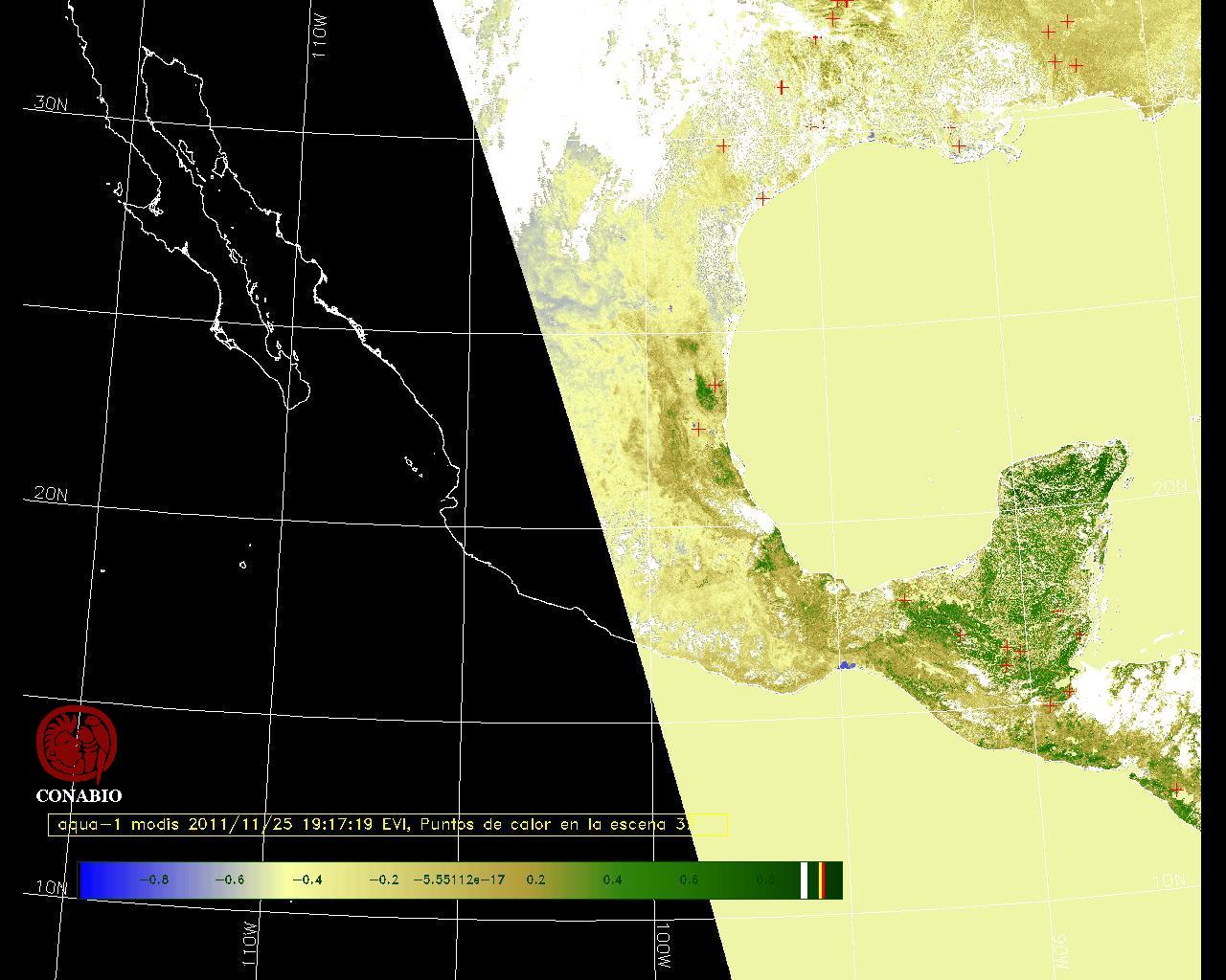 Se considera como punto de calor al elemento espacial mínimo de la imagen (pixel) que reporta una temperatura elevada. Para las imágenes diurnas la temperatura mínima considera es de 42 C y para las imágenes nocturnas es de 25 C. |