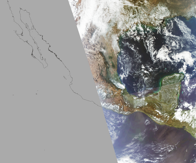Nubosidad en el terreno:25% Nubosidad sobre México:7% Datos nulos en la escena:47% Datos nulos sobre México:49% |