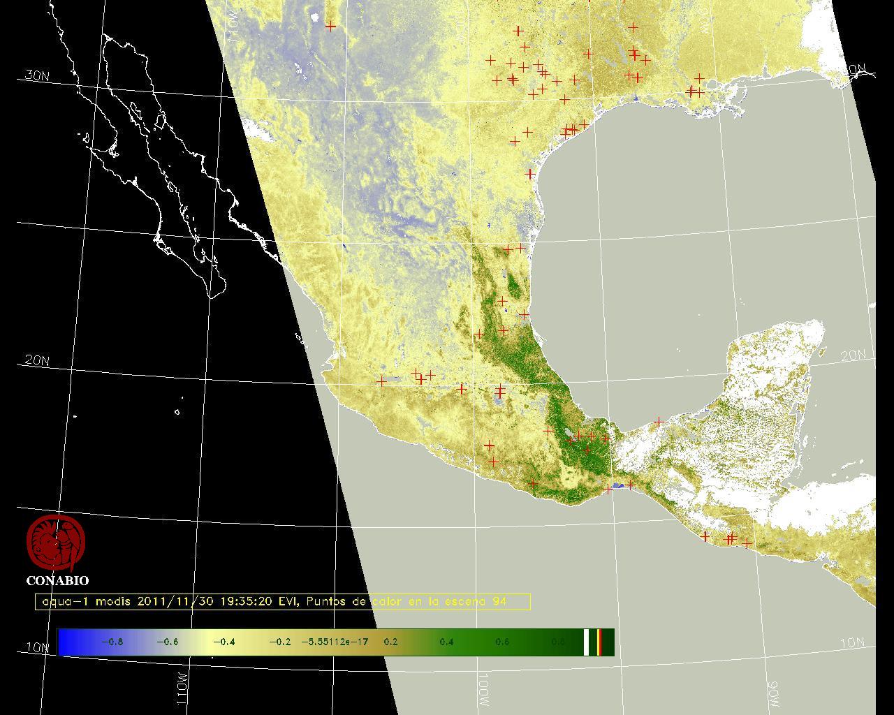 Se considera como punto de calor al elemento espacial mínimo de la imagen (pixel) que reporta una temperatura elevada. Para las imágenes diurnas la temperatura mínima considera es de 42 C y para las imágenes nocturnas es de 25 C. |