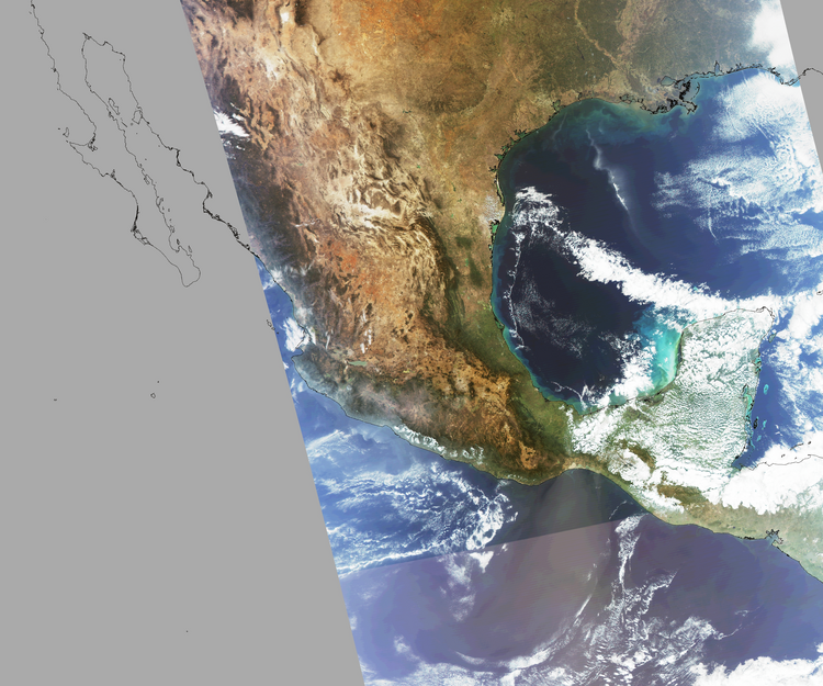 Nubosidad en el terreno:9% Nubosidad sobre México:7% Datos nulos en la escena:34% Datos nulos sobre México:17% |