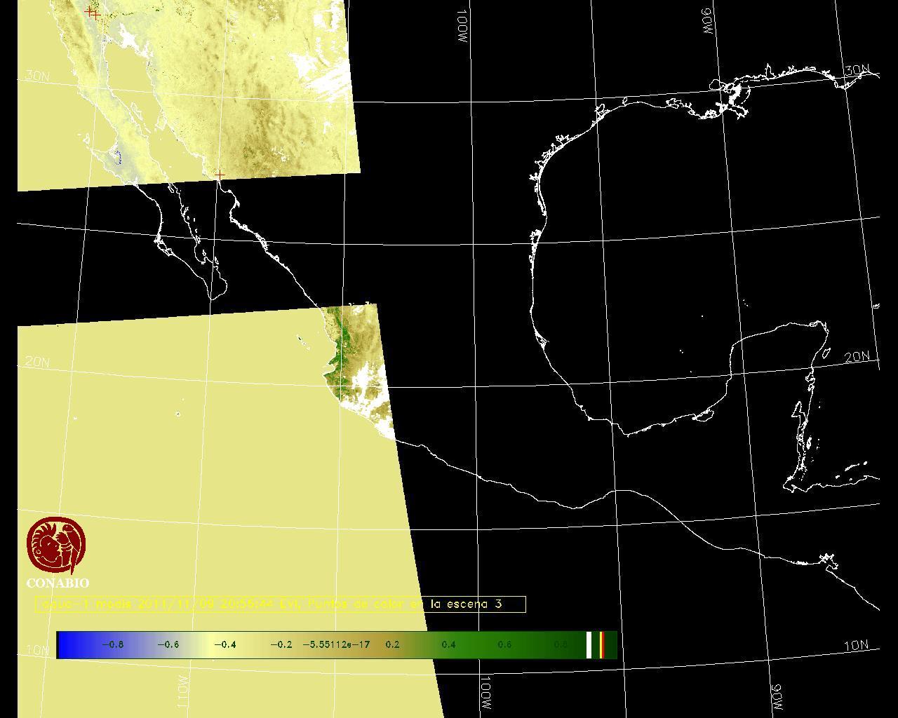 Nubosidad en el terreno:6% Nubosidad sobre México:5% Datos nulos en la escena:57% Datos nulos sobre México:59% |