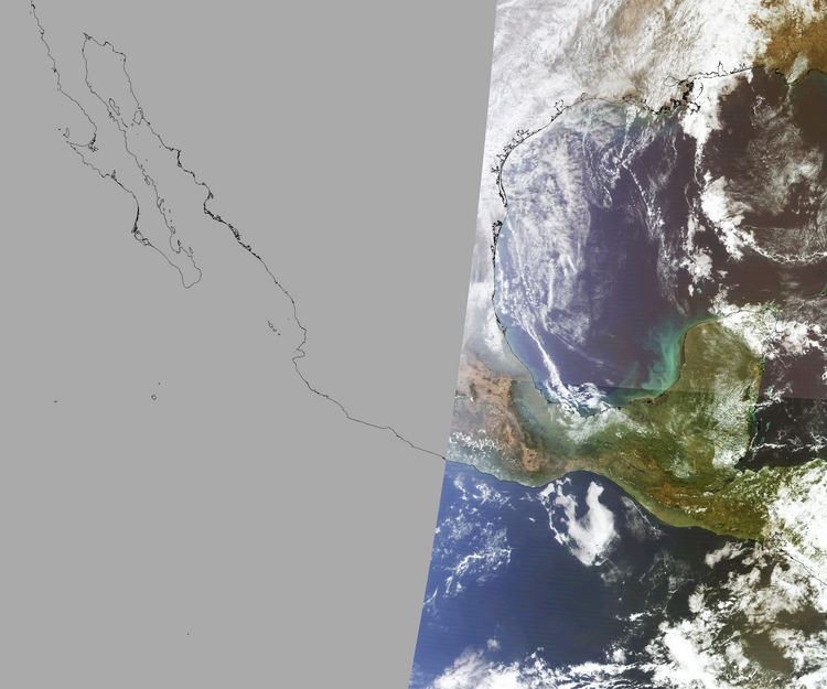 Nubosidad en el terreno:28% Nubosidad sobre México:7% Datos nulos en la escena:55% Datos nulos sobre México:72% |