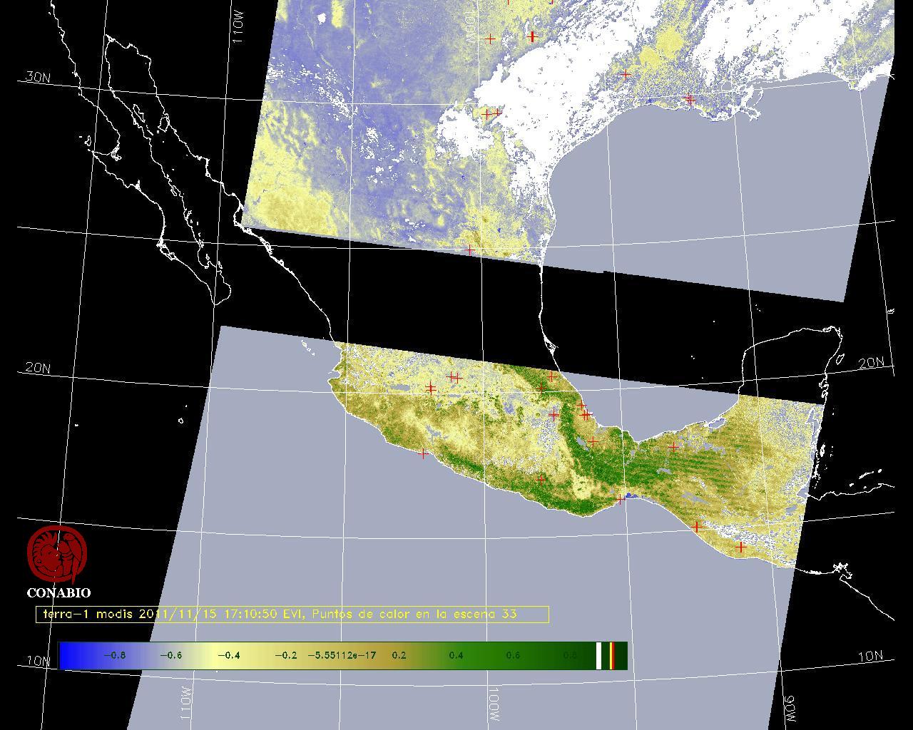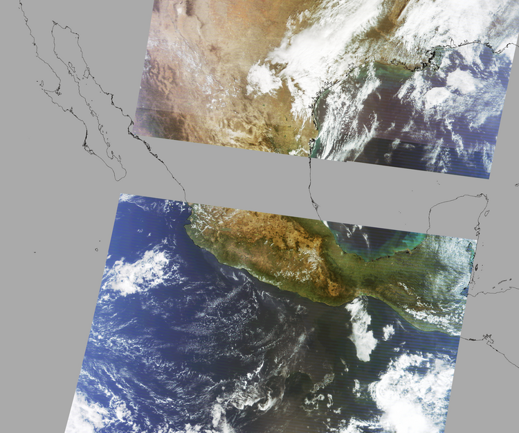 Nubosidad en el terreno:15% Nubosidad sobre México:2% Datos nulos en la escena:28% Datos nulos sobre México:16% |