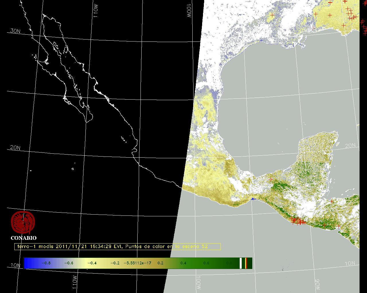 Se considera como punto de calor al elemento espacial mínimo de la imagen (pixel) que reporta una temperatura elevada. Para las imágenes diurnas la temperatura mínima considera es de 42 C y para las imágenes nocturnas es de 25 C. |