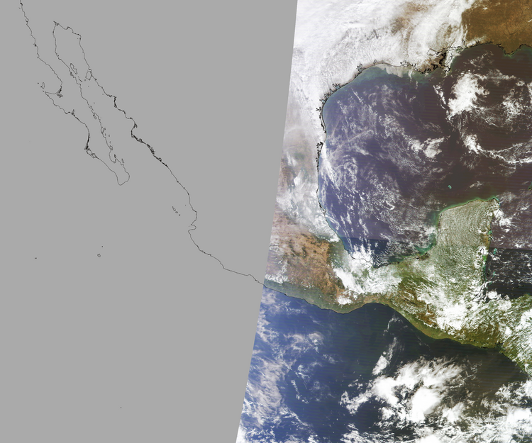 Nubosidad en el terreno:35% Nubosidad sobre México:16% Datos nulos en la escena:50% Datos nulos sobre México:64% |
