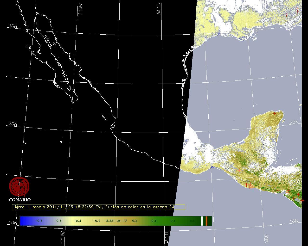 Se considera como punto de calor al elemento espacial mínimo de la imagen (pixel) que reporta una temperatura elevada. Para las imágenes diurnas la temperatura mínima considera es de 42 C y para las imágenes nocturnas es de 25 C. |