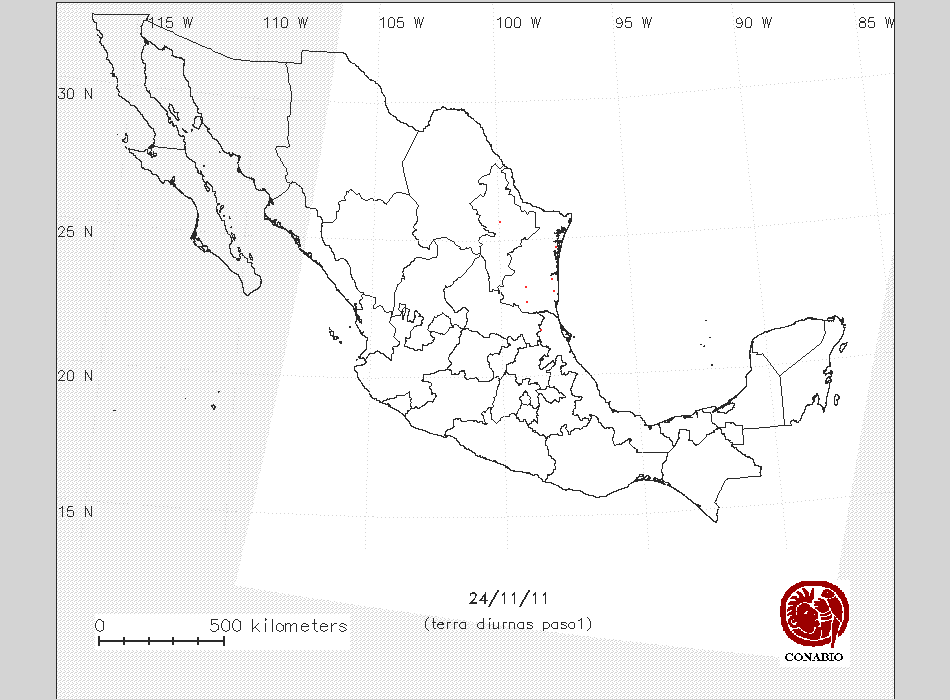 | 5 | -97 56 38 | 23 11 26 | Pastizal cultivado | Aldama,Tamaulipas | NO AFECTA | 0 ° | NA | ||