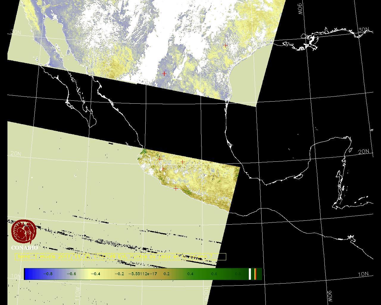 Nubosidad en el terreno:25% Nubosidad sobre México:11% Datos nulos en la escena:35% Datos nulos sobre México:18% |