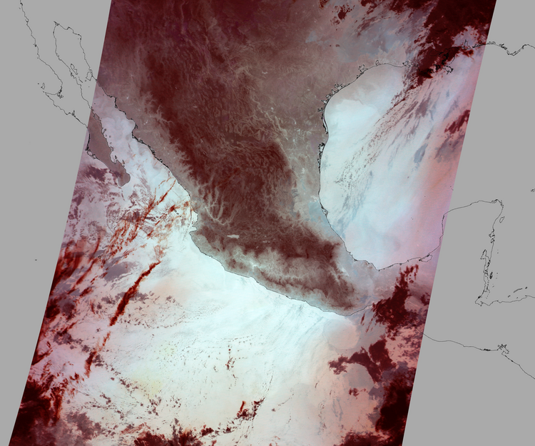 Nubosidad en el terreno:2% Nubosidad sobre México:0% Datos nulos en la escena:28% Datos nulos sobre México:14% |