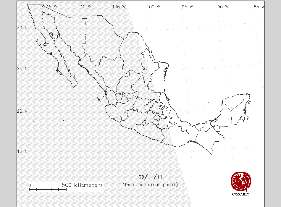 Nubosidad en el terreno:11% Nubosidad sobre México:1% Datos nulos en la escena:57% Datos nulos sobre México:73% |