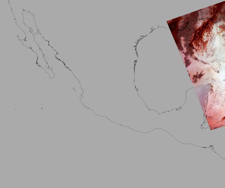 Nubosidad sobre el terreno:8% Nubosidad sobre México:0% Datos nulos en la escena:87% Datos nulos sobre México:97% |
