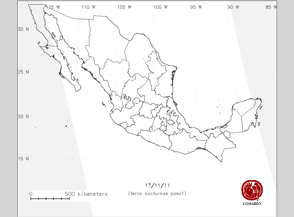 | 4 | 1 | -96 6 17 | 15 57 10 | Pastizal inducido | San Miguel del Puerto,Oaxaca | NO AFECTA | 15 ° | NA | |