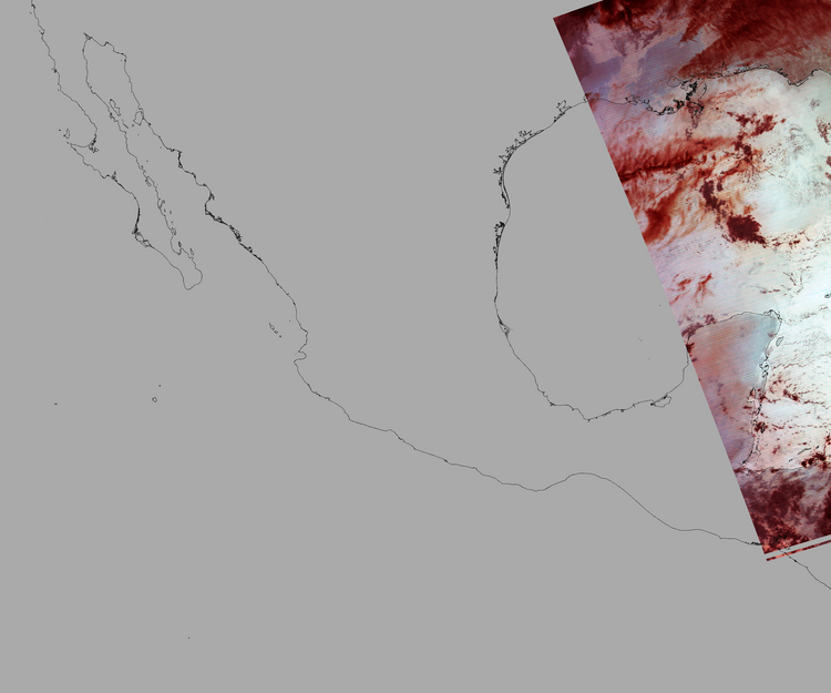 Nubosidad sobre el terreno:5% Nubosidad sobre México:0% Datos nulos en la escena:83% Datos nulos sobre México:94% |