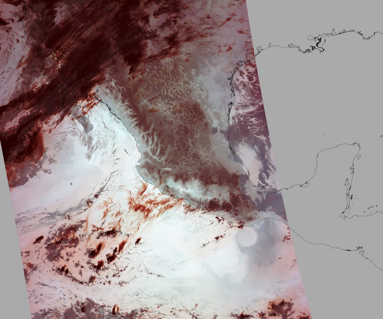 Nubosidad sobre el terreno:21% Nubosidad sobre México:18% Datos nulos en la escena:30% Datos nulos sobre México:11% |