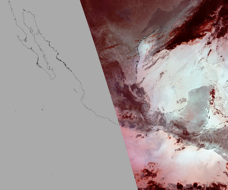 Nubosidad en el terreno:5% Nubosidad sobre México:0% Datos nulos en la escena:48% Datos nulos sobre México:50% |