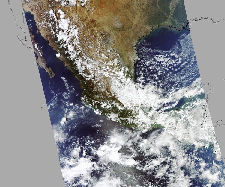 Nubosidad en el terreno:33% Nubosidad sobre México:40% Datos nulos en la escena:28% Datos nulos sobre México:5% |