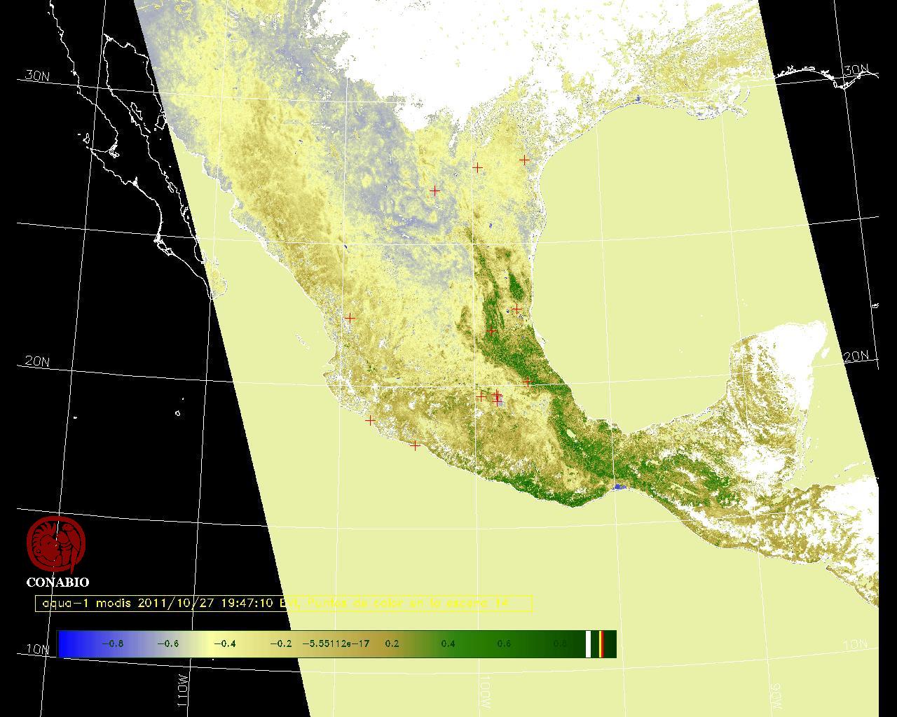 Se considera como punto de calor al elemento espacial mínimo de la imagen (pixel) que reporta una temperatura elevada. Para las imágenes diurnas la temperatura mínima considera es de 42 C y para las imágenes nocturnas es de 25 C. |