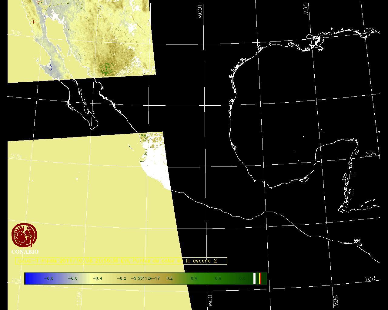 Nubosidad en el terreno:10% Nubosidad sobre México:12% Datos nulos en la escena:57% Datos nulos sobre México:59% |