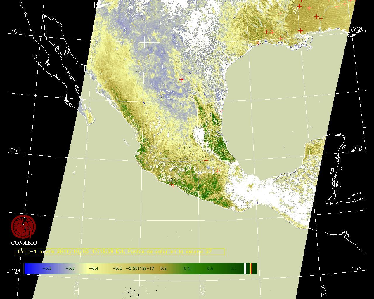 Nubosidad en el terreno:14% Nubosidad sobre México:12% Datos nulos en la escena:28% Datos nulos sobre México:15% |
