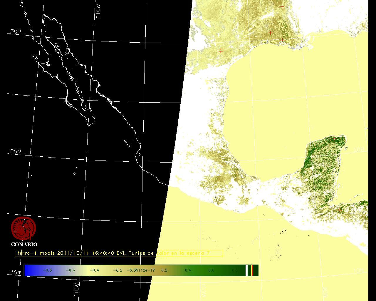 Se considera como punto de calor al elemento espacial mínimo de la imagen (pixel) que reporta una temperatura elevada. Para las imágenes diurnas la temperatura mínima considera es de 42 C y para las imágenes nocturnas es de 25 C. |