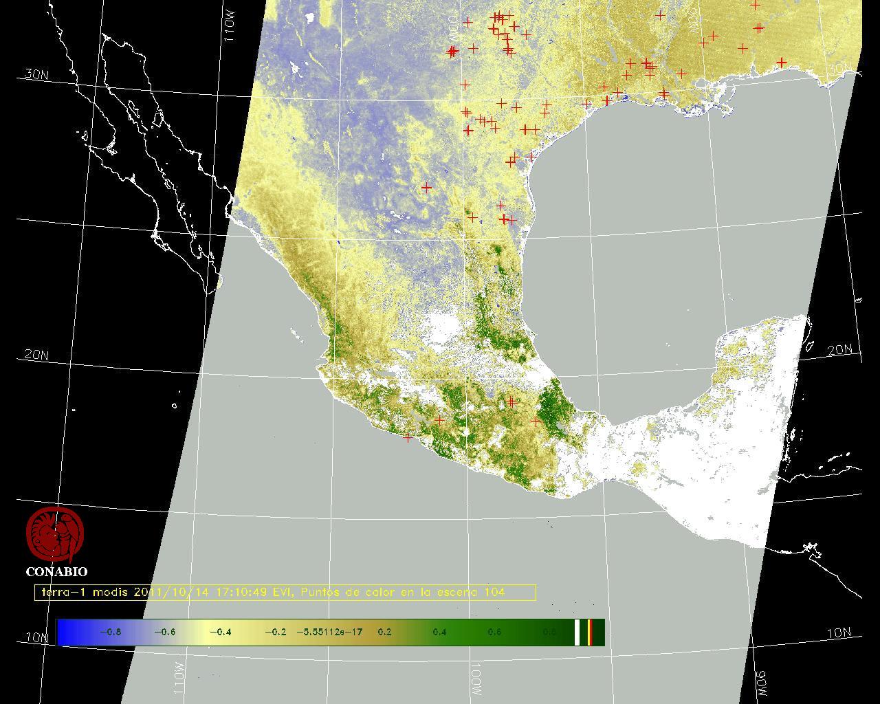 Se considera como punto de calor al elemento espacial mínimo de la imagen (pixel) que reporta una temperatura elevada. Para las imágenes diurnas la temperatura mínima considera es de 42 C y para las imágenes nocturnas es de 25 C. |