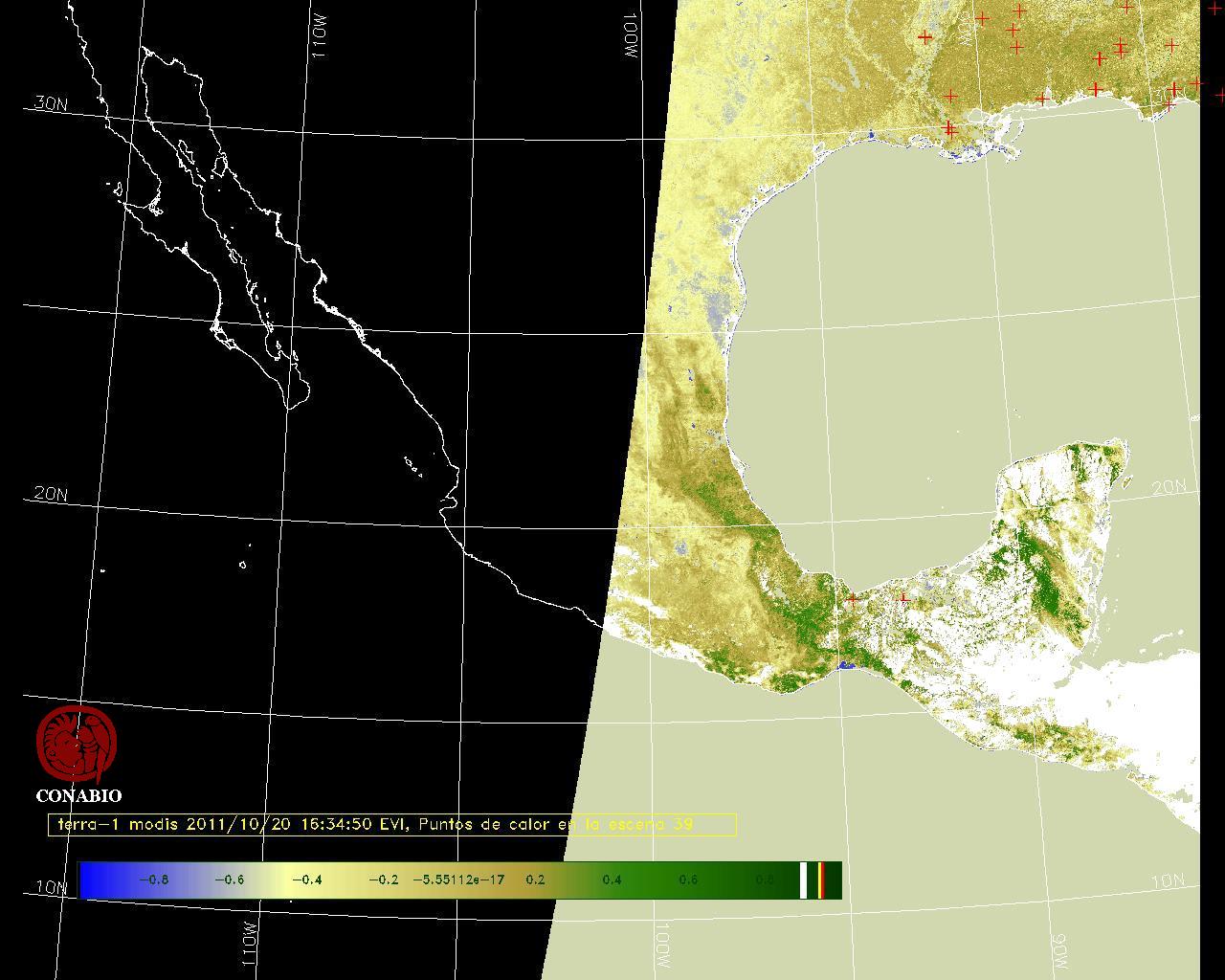 Se considera como punto de calor al elemento espacial mínimo de la imagen (pixel) que reporta una temperatura elevada. Para las imágenes diurnas la temperatura mínima considera es de 42 C y para las imágenes nocturnas es de 25 C. |