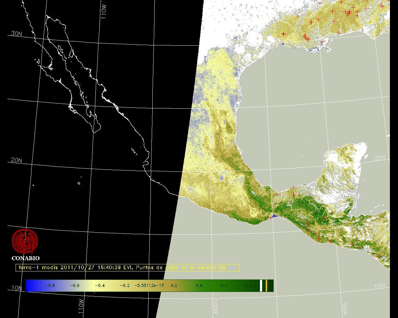 Se considera como punto de calor al elemento espacial mínimo de la imagen (pixel) que reporta una temperatura elevada. Para las imágenes diurnas la temperatura mínima considera es de 42 C y para las imágenes nocturnas es de 25 C. |
