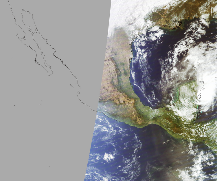 Nubosidad en el terreno:22% Nubosidad sobre México:7% Datos nulos en la escena:45% Datos nulos sobre México:54% |